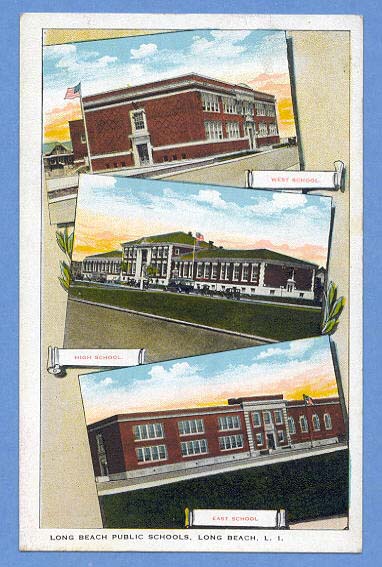 A couple of nice old views of Long Beach Schools. These were probably in the 30's or 40's. Long Beach HS on top (Lindell School) and the below it, a postcard of the West, High School and East Schools.